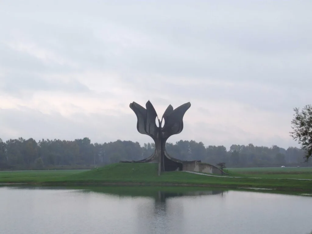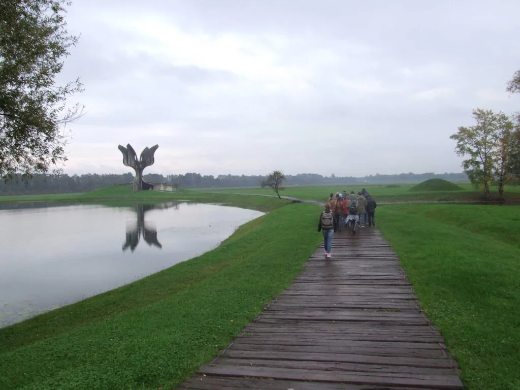 A one-day visit to memorial sites in Croatia was organized as part of the study programme of the Regional School of Transitional Justice (School). Twenty-five students of the fourth generation of the School visited the memorial monument and the Jasenovac Memorial Museum and the Memorial Centre and memorial monument in Ovčara, near Vukovar. On this occasion, they talked about the culture of remembrance in relation to the crimes committed in these locations.